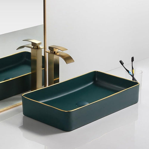 Zinarch Ceramic Designer Rectangular Gold Counter Top/Over Counter Wash Basin Zinarch Ceramic Designer Rectangular Gold Counter Top/Over Counter Wash Basin
